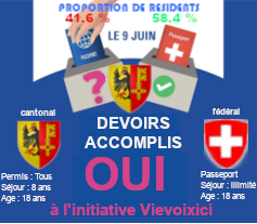 des étrangers auxquels elle confère les droits qui leur sont aujourd’hui refusés, mais précise les devoirs additionnels, par rapport aux suisses, auxquelles elle entend les soumettre, à savoir une durée de 8 ans de séjour dans le pays. Cette condition, qui à elle seule, réduit de plus de 10% la proportion de la population étrangère concernée (passant de 41% à 30%) est passée sous silence. Enfin, il est occulté que les droits accordés à qui remplilt ces contraintes de séjour ne s’appliquent pas uniformément à tous les types de scrutins, mais uniquement aux scrutins municipaux et cantonaux, ceux portant sur l’ensemble du pays restant l’apanage du passeport suisse. Bref, le PLR ment sur ce qu’il a accepté à propos des communes du canton, ne montre pas ce qu’il rejette dans l’initative et ment de surcroît sur les raisons de son rejet.