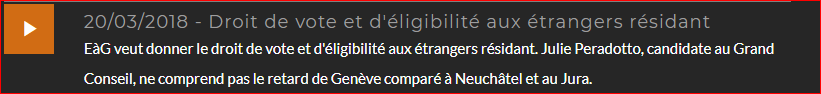 Julie Peradotto, candidate Ensemble à Gauche, a présenté à l’antenne de Radio-Cité le 20 mars 2018 les raisons du projet de loi constitutionnelle que sa formation a déposé officiellement le 10 avril au Grand Conseil.
