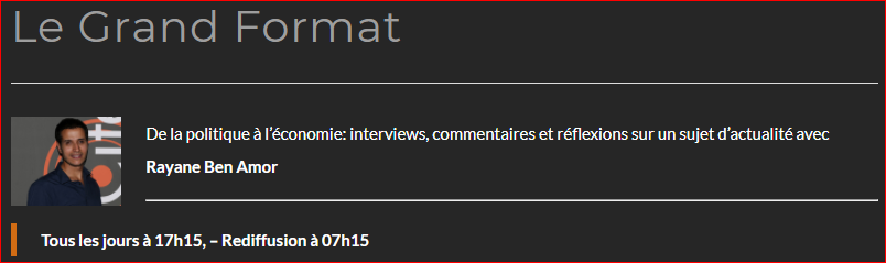 Notre membre du comité Dario Ciprut, a été interviewé par téléphone le 12 avril par M. Rayane Ben Amor, journaliste à Radio Cité, dans le cadre de l’émission Grand Format.